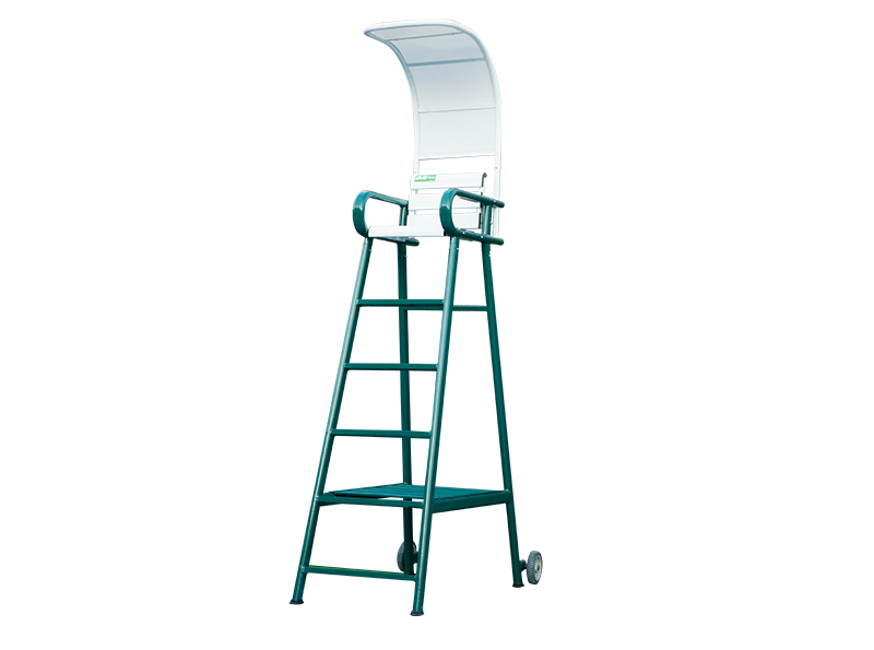 设计:裁判椅支架采用全新八字形可分拆组合设计,结构稳固,上下方便。双太阳伞插孔设计,配有流线型遮阳篷。后置采用橡胶轮,移动方便